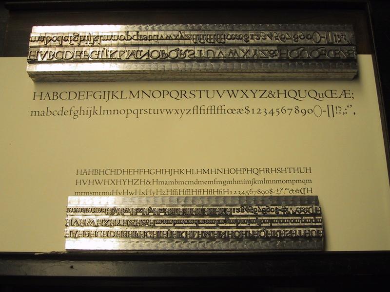 When we're casting a font of type, we save an extra character to make a proof. Here are the types and resulting proof for 36 point Centaur (Bruce Rogers) and 18 point Goudy Old Style (Frederic Goudy). | |