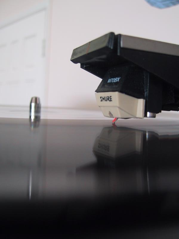 Yeah, I know it's trite, but I spent half an hour taking pictures of a spinning turntable after mowing the lawn. So it's my turntable study. Wee.