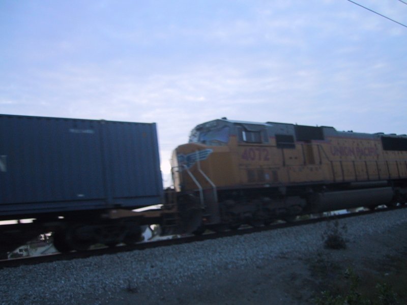 Northbound UP. UP4072 is second in a two-locomotive MU pulling intermodal containers northbound. |